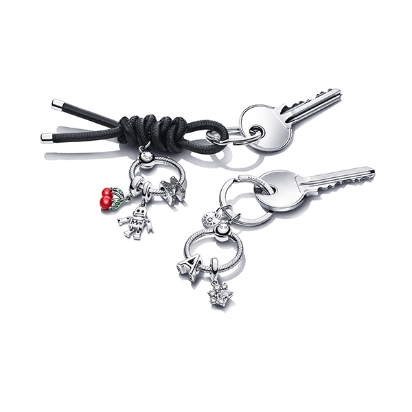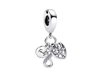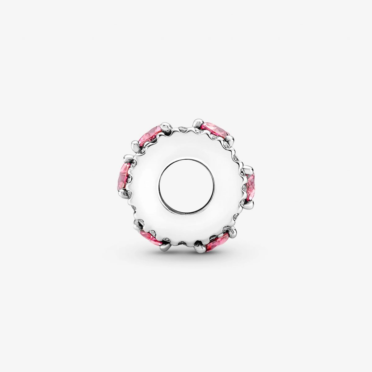 Charm 3 trái tim Halo bạc phối với đá cubic zirconia hồng trong suốt