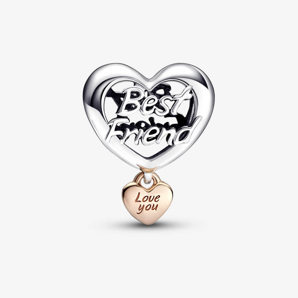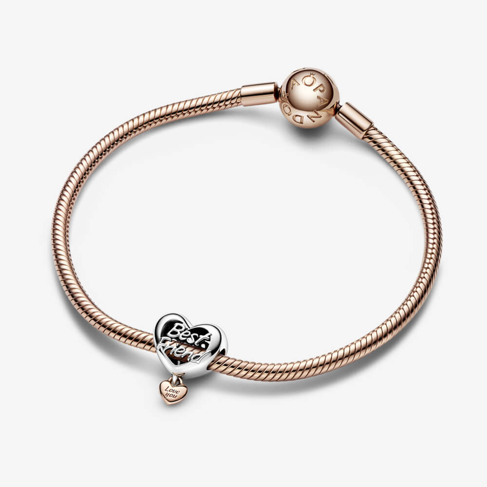 Charm bạc Pandora moments mạ vàng hồng 14k dành khắc chũ “Best friend” (new)